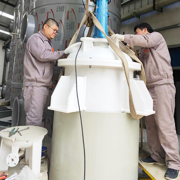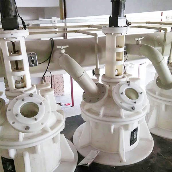 當PP儲罐中葉輪獲得外(wài)界提供的能量,如電機帶動攪拌軸(zhóu)進行轉動(dòng),產生了自身旋轉運動的時候,首先要將機械能傳給附近的流體(tǐ),使(shǐ)流(liú)體高度湍動,隨著湍流漩渦的擴散,一股高(gāo)速射流開始(shǐ)推動周圍緩(huǎn)慢流動的液體,並使其沿(yán)一定途徑在(zài)釜(fǔ)內作大範(fàn)圍的主(zhǔ)體循環流動,這種循環流動(dòng)的途徑就形成(chéng)了攪拌反應釜內液體(tǐ)的流型。不同型式的葉輪可以產生不同流型,並區別(bié)為軸向和徑向流型兩種。所(suǒ)謂軸向流葉輪,是使液體軸向入軸向出,徑向(xiàng)流葉輪是使液體由軸向入而由徑向出。一般軸向流主要對(duì)液體產生上下翻動的循環作用,徑向流主要(yào)對液體產生剪切作用,屬於軸向流的葉輪(lún)有螺旋漿等,徑向流葉輪有渦輪槳和平槳等。