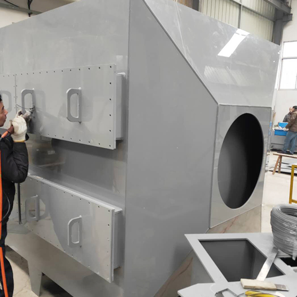 PP活性碳吸附箱能對苯、醇、酮、觶、酯、汽油類等有機溶劑的廢氣吸(xī)附回(huí)收,更適用於小風量高濃度的(de)廢氣治理,因此噴塗、食品加工、印刷電路板(bǎn)、半導體製造、化(huà)工、電子、製皮業、乳膠製品業、 造紙等行業均可(kě)選用. 活性炭吸附設備主要是利用多孔性固體吸附劑活性炭具有(yǒu)吸附作用,能(néng)有效的(de)阹除工業廢氣(qì)中(zhōng)的有機類汙染物質和色味等,廣泛應用於工業有機廢氣淨化的末端處(chù)理,淨化效(xiào)果(guǒ)良好。氣體經管道進入吸收塔後,在兩(liǎng)個不同相界麵之(zhī)間產生擴散過(guò)程,擴散(sàn)結束,氣體被風機吸出並排放出(chū)去 。